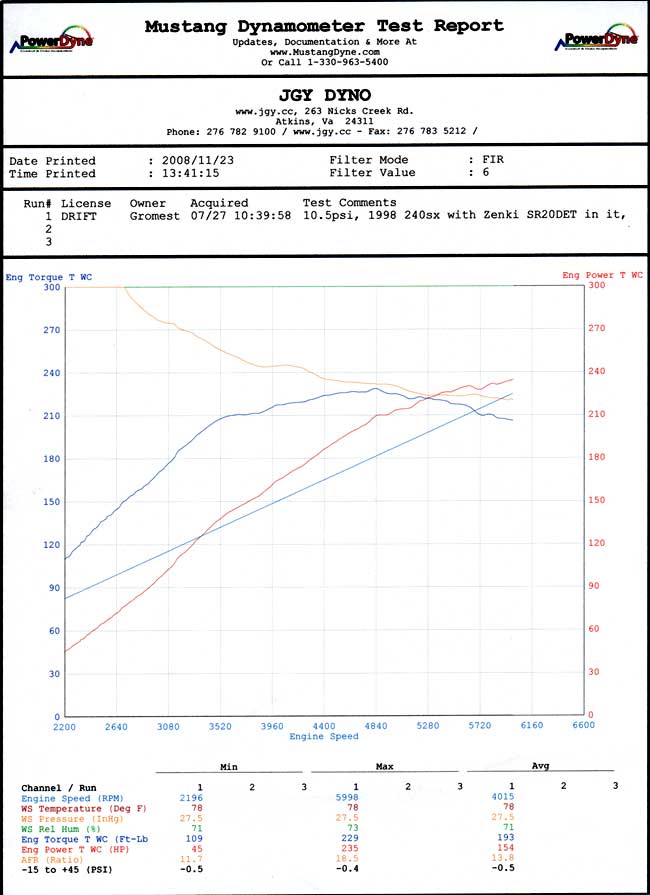 Here's a video showing the typical time it takes to do a dyno pull Here you can see we data logged the air/fuel ratio